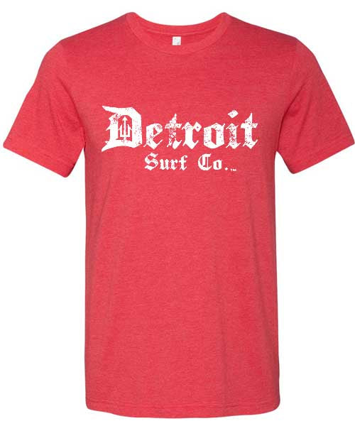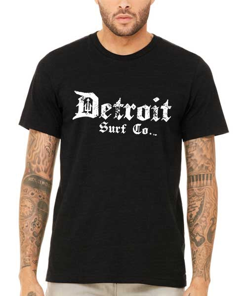 Mens classic distressed Detroit Surf Co logo premium T-Shirts.  Original trident D shirt that started it all.