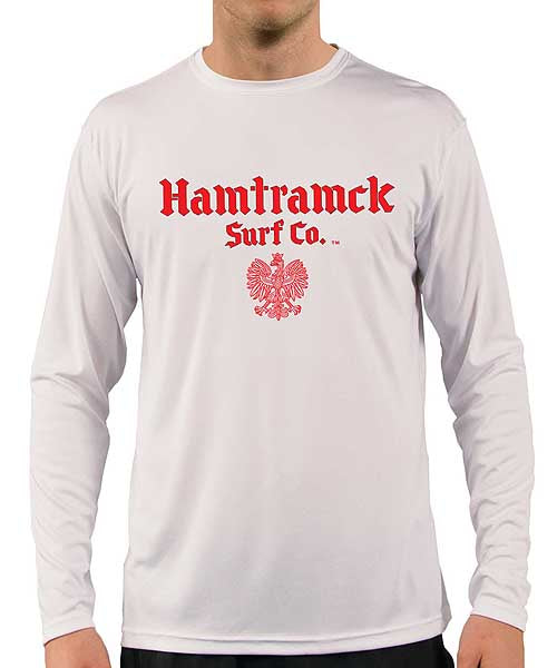 Hamtramck Surf Co. High Performance Fishing/paddling/Action Sunscreen UPF 50 shirt. Stay cool, look cool, and don't get sun burned.